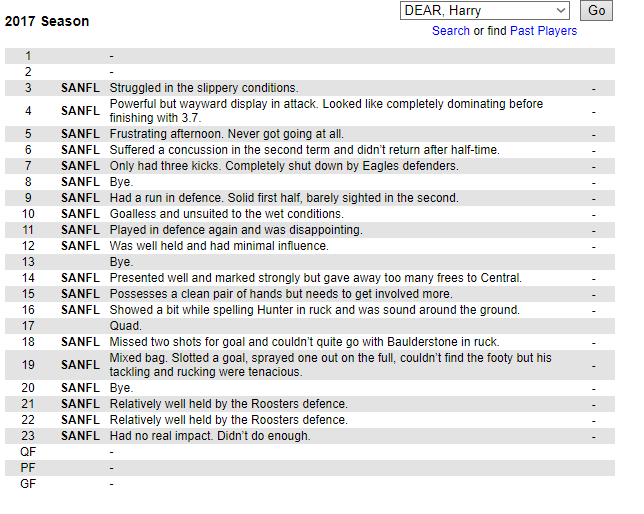 Hanging out a bloke to dry when he was forced to play as a Key Defender for reasons of team balance is very very short sighted given the potential he showed as an 18 year old KPF.