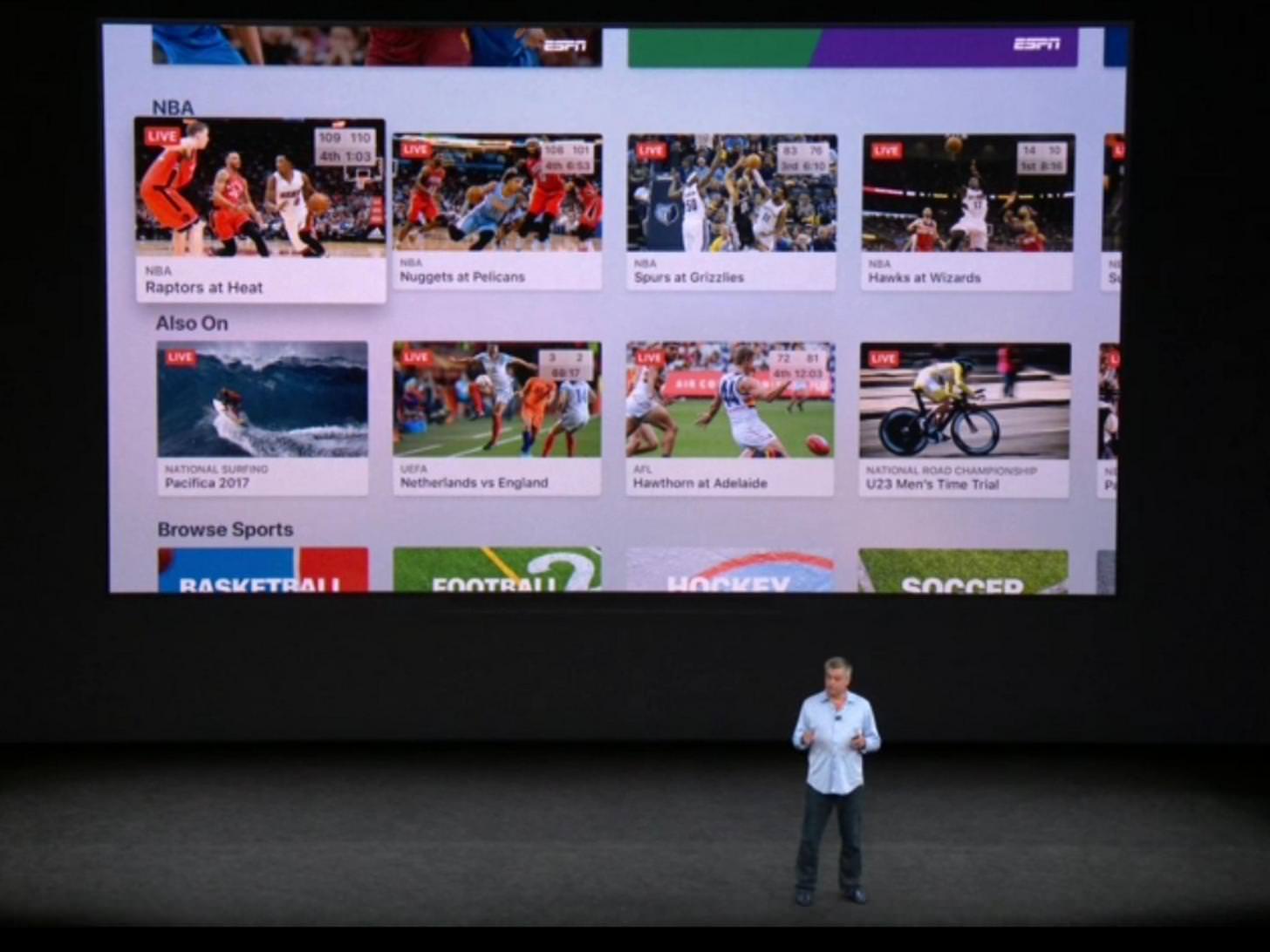 Watching this mornings Apple launch event , a slide popped up that was shown during the launch of Apples new 4K HDR , with a Hawks v Adelaide AFL match as one of the thumbnails.